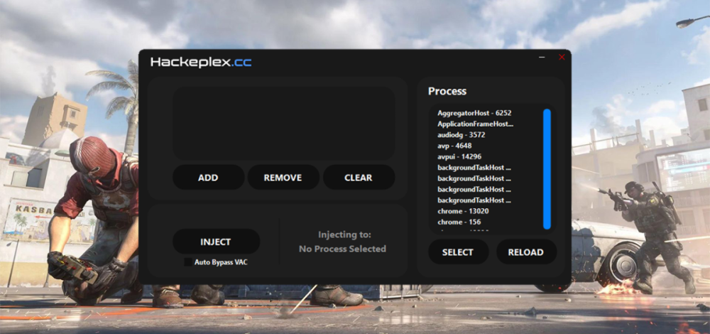 Hackeplex.cc Injector is a cheat dll injector with a great looking UI. It allows you to inject your hacks into games such as CSGO and many more Hackeplex.cc Injector supports Counter-Strike: Global Offensive, Team Fortress 2, Grand Theft Auto V and many other games and the Hackeplex.cc Injector has a nice and easy to use user interface. How To Use Hackeplex.cc Injector: Download the Hackeplex.cc Injector Extract the .zip Run the Hackeplex Injector.exe as administrator Select a Process Select a Cheat from your pc Press inject and Have Fun The Hackeplex.cc Injector has an easy to use design, and a nice user interface and a lot of game Injection possibilities like CSGO, TF2, GTA5, RUST and many more.